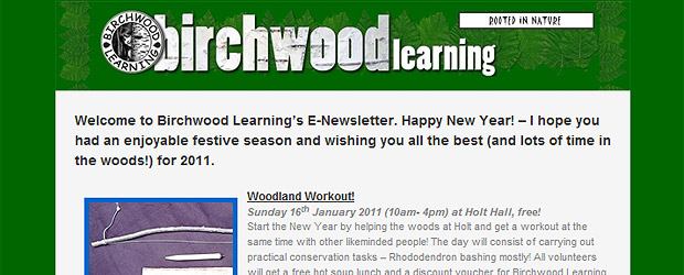 Welcome to Birchwood Learning’s E-Newsletter. Happy New Year! – I hope you had an enjoyable festive season and wishing you all the best (and lots of time in the woods!) for 2011.