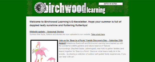 Welcome to Birchwood Learning’s E-Newsletter. Hope your summer is full of dappled leafy sunshine and fluttering flutterbys!