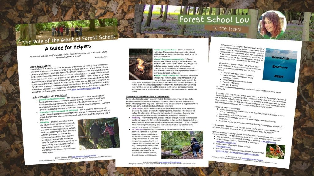 • ‘The Role of the Adult at Forest School – A Guide for Helpers’